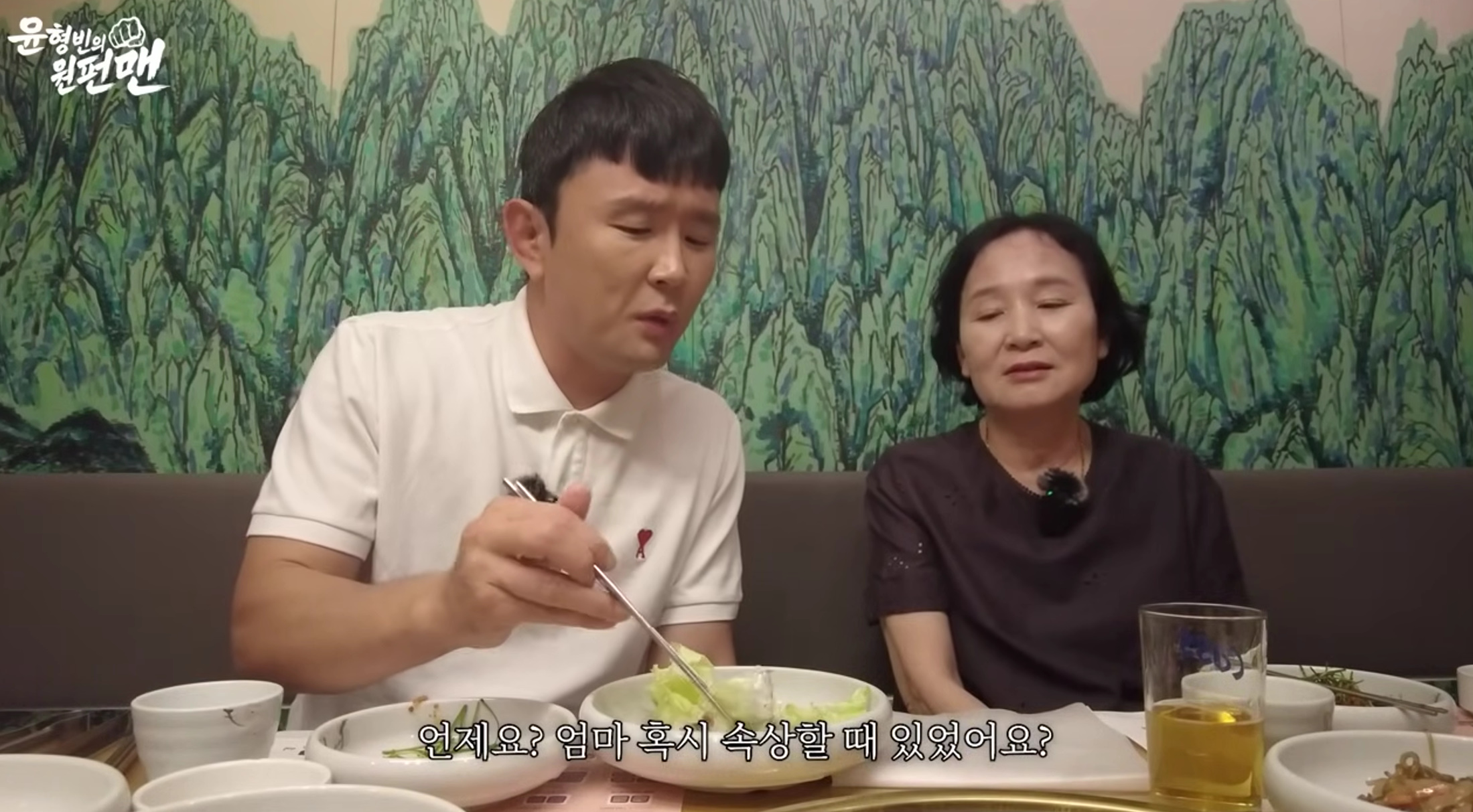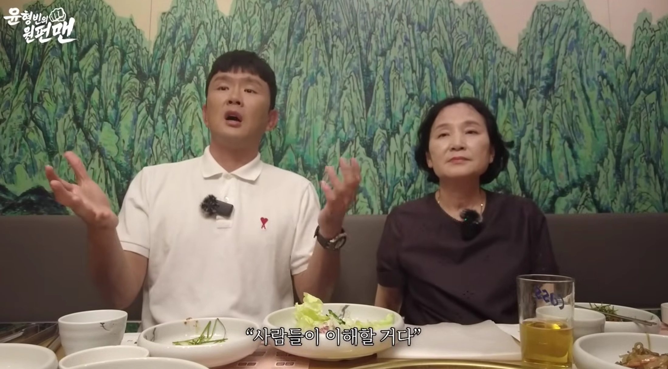 영상에서 제작진이 "방송에서 아들이 욕 먹거나 힘들어할 때 어떤 마음이었냐"고 물었다. 윤형빈의 모친은 "속상하지, 내색은 안해봤다"라고 답했다.