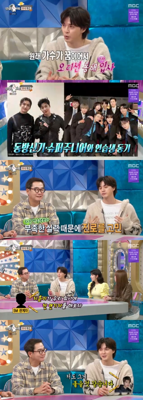 이어 "'나는 가수는 안되겠다'는 생각을 했는데, SM에서도 같은 생각을 했더라. 그 때 마침 SM에서 배우메니지먼트를 시작하는 시점이라 그때부터 연기를 시작했다"고 말해 웃음을 자아냈다.