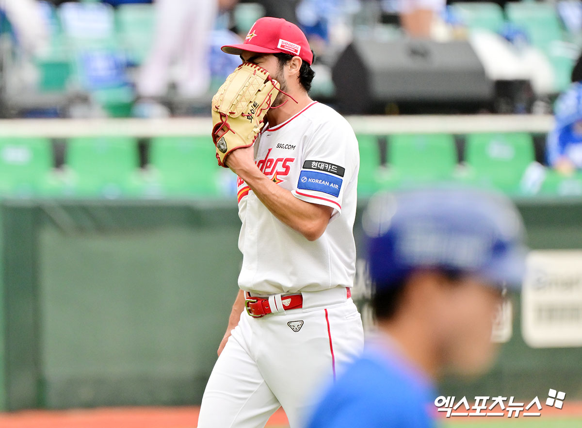 (엑스포츠뉴스 인천, 김한준 기자) 9일 오후 인천SSG랜더스필드에서 열린 '2025 신한 SOL Bank KBO 포스트시즌' 삼성 라이온즈와 SSG 랜더스의 준플레이오프 1차전 경기, 1회초 수비를 마친 SSG 화이트가 더그아웃으로 향하고 있다.