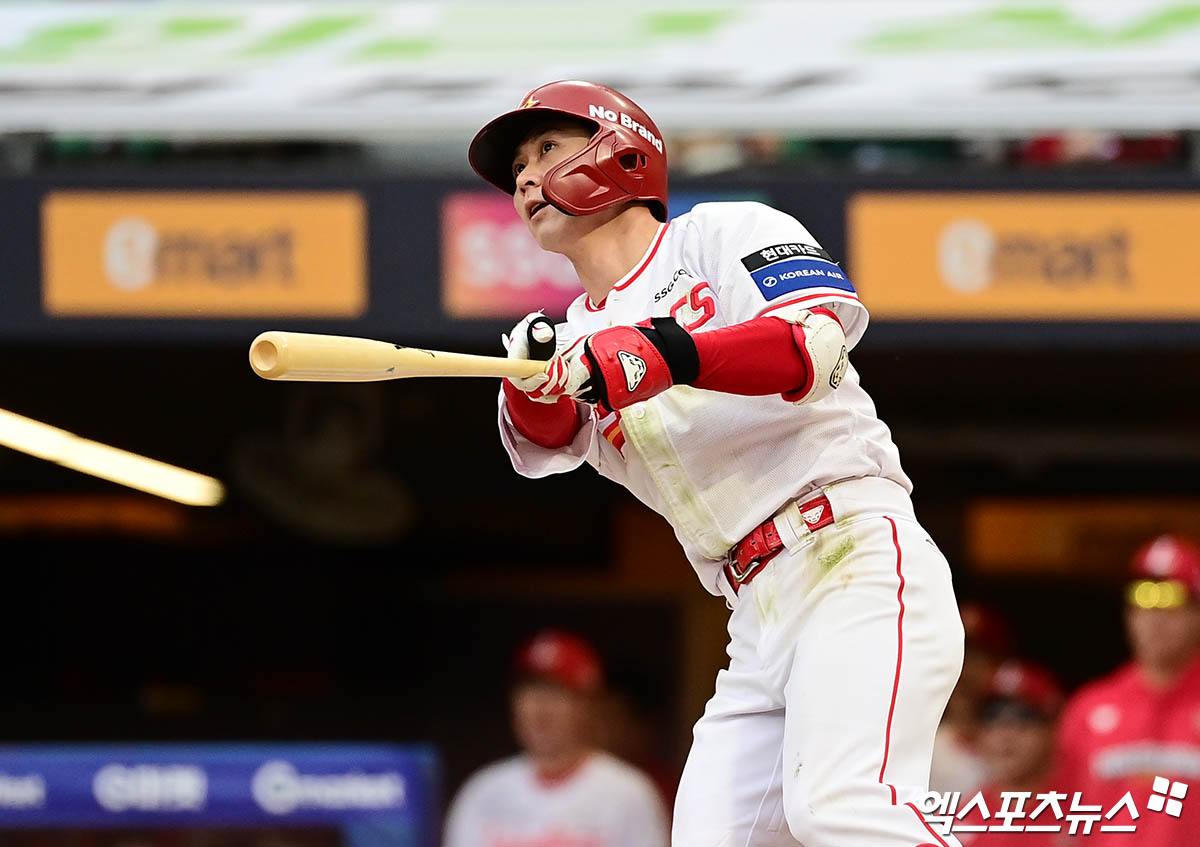 (엑스포츠뉴스 인천, 박지영 기자) 9일 오후 인천SSG랜더스필드에서 열린 '2025 신한 SOL Bank KBO 포스트시즌' 삼성 라이온즈와 SSG 랜더스의 준플레이오프 1차전 경기, 6회말 1사 1루 SSG 안상현이 파울 타구를 바라보고 있다.