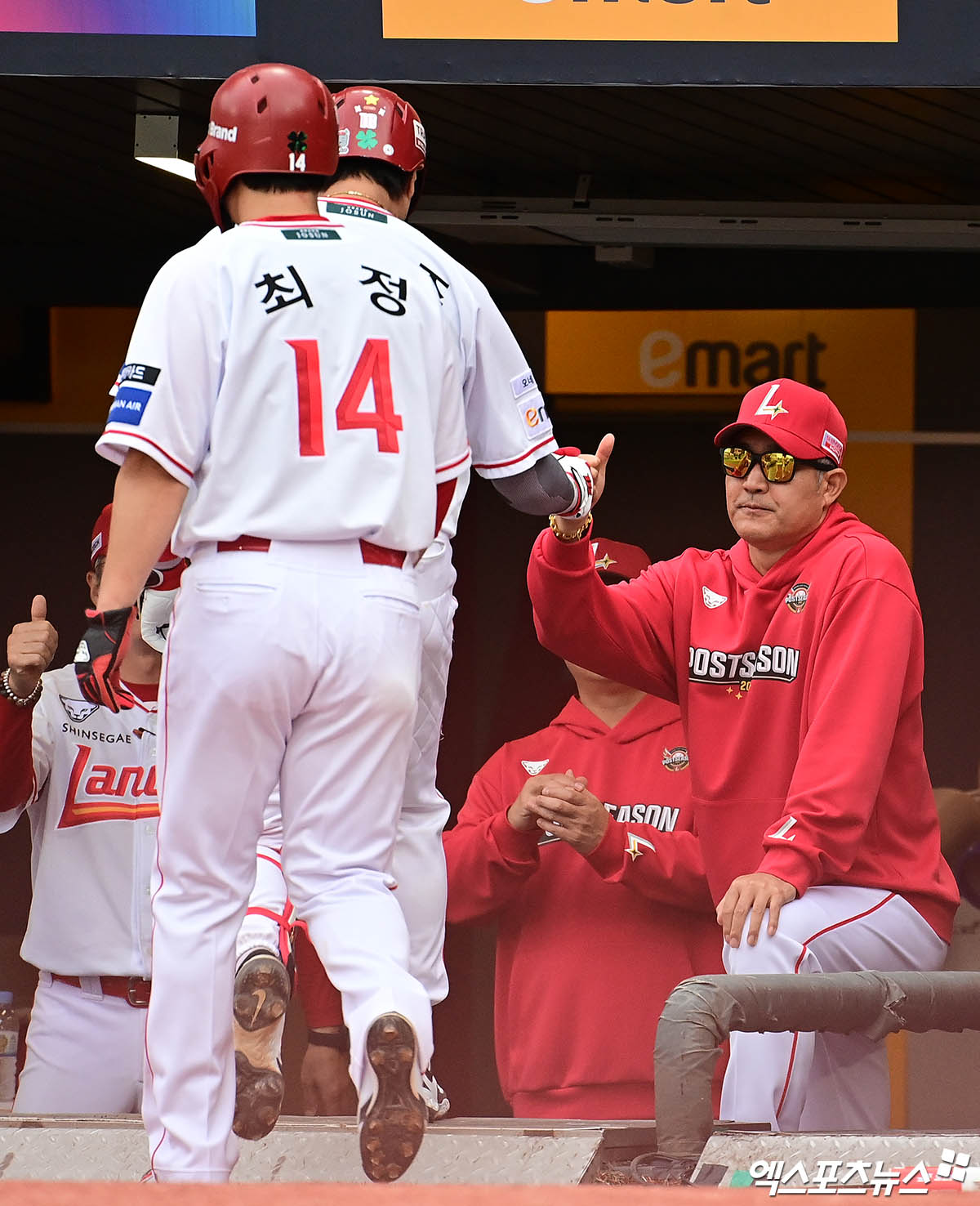 이숭용 감독 '고명준 홈런에 엄지 척'[포토]