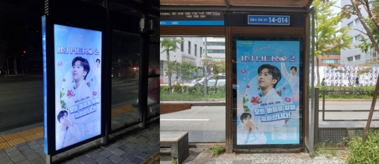 현재 임영웅 팬클럽 '포에버웅스터디방'은 합정역 2번 출구 홍대 방향 버스정류장에서 임영웅의 정규 2집 'IM HERO 2' 발매와 전국 콘서트 개최를 기념하는 광고를 진행 중이다.