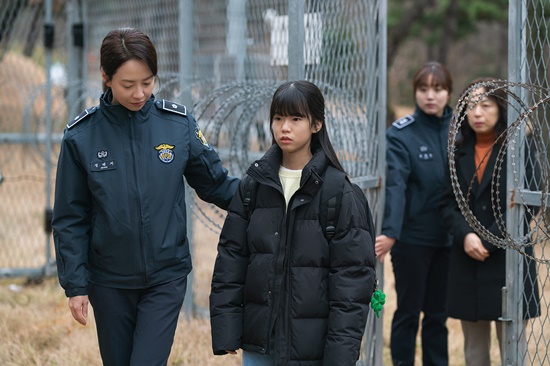 극 중에서 15년 차 FM 교도관 정태저로 등장하는 송지효는 수용자의 딸 준영 역을 연기한 아역 도영서와 호흡을 맞췄던 순간을 떠올리며 "(도)영서의 본명이 김보민인데, 영화를 찍은 그 사이에 활동명을 바꿨더라"고 이야기를 꺼냈다.