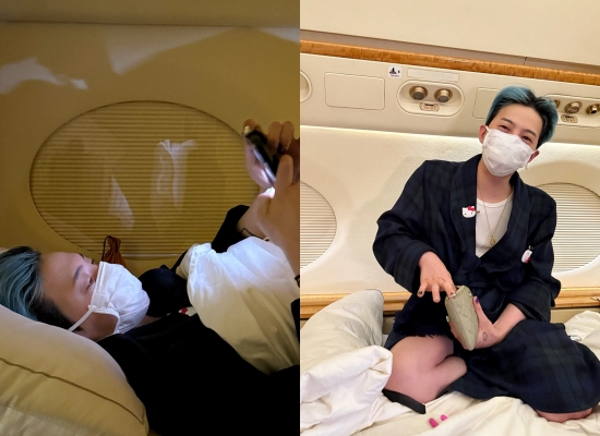 이어진 사진에는 편안한 차림으로 차량에 탑승하고 전세기를 타는 지드래곤의 억소리나는 일상이 공개됐다. 지드래곤은 전용기에 앉아 샴페인을 마시는가 하면 호텔 같은 전용 침대에서 핸드폰을 하며 시간을 보냈다. 장난 가득한 표정이 돋보인다.
