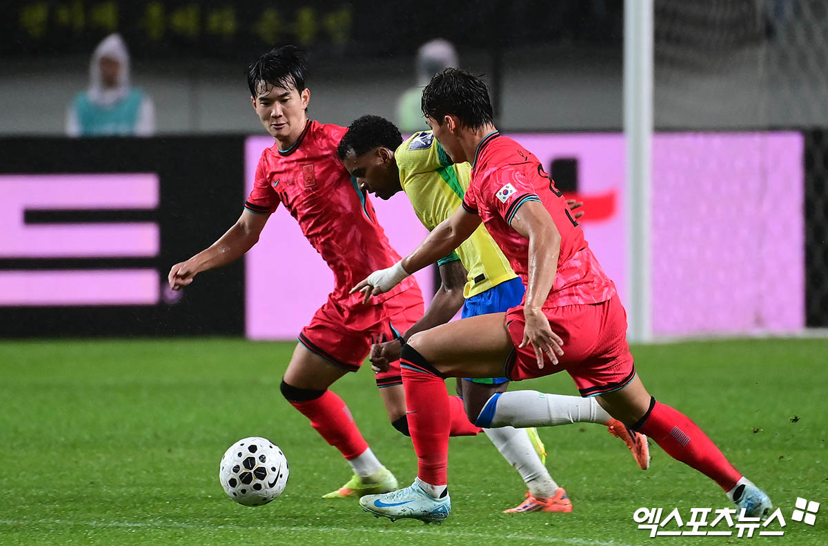 2분 뒤 후반 4분엔 백승호가 패스미스를 범하자 브라질이 재빠르게 역공을 취했다. 호드리구가 득점하면서 역시 멀티골 주인공이 됐다.