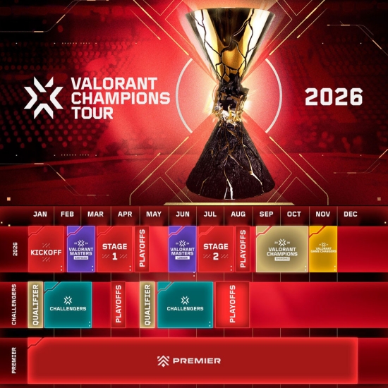 (엑스포츠뉴스 이정범 기자) 라이엇 게임즈가 2026년 '발로란트 챔피언스 투어' 로드맵을 공개했다.