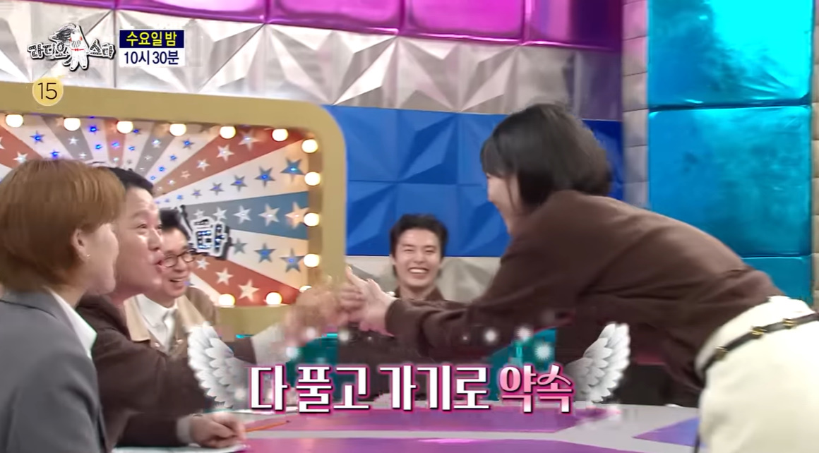 그러면서 "지금은 애교 보여달라고 하면 하죠"라고 웃어 보였고, 김구라는 "이제 그만 하자. 약속"이라며 강지영과 새끼손가락을 걸고 약속하는 모습으로 눈길을 끌었다.