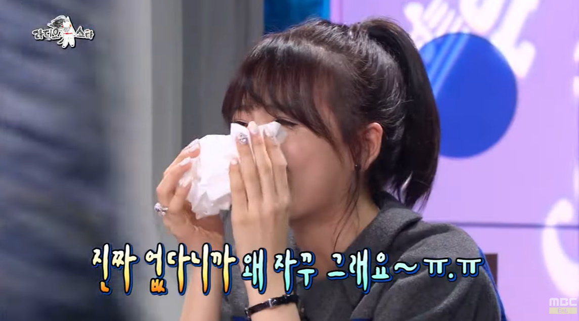이에 강지영은 "못 하는데. 안 할래요"라며 울먹였고, 이내 "진짜 애교 없는데 자꾸"라고 말한 뒤 눈물을 쏟았다. 김구라는 "없는지 몰랐어"라며 미안하다고 사과하는 모습을 보이기도 했다.