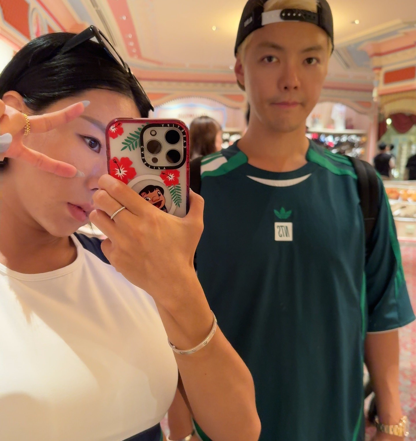 사진 속에는 데이트 중인 이상화 강남 부부의 단란한 모습이 담겨 있다. 이상화는 브이 포즈를 하며 카메라를 들었고, 강남은 입을 앙 다물며 카메라를 바라보고 있다.