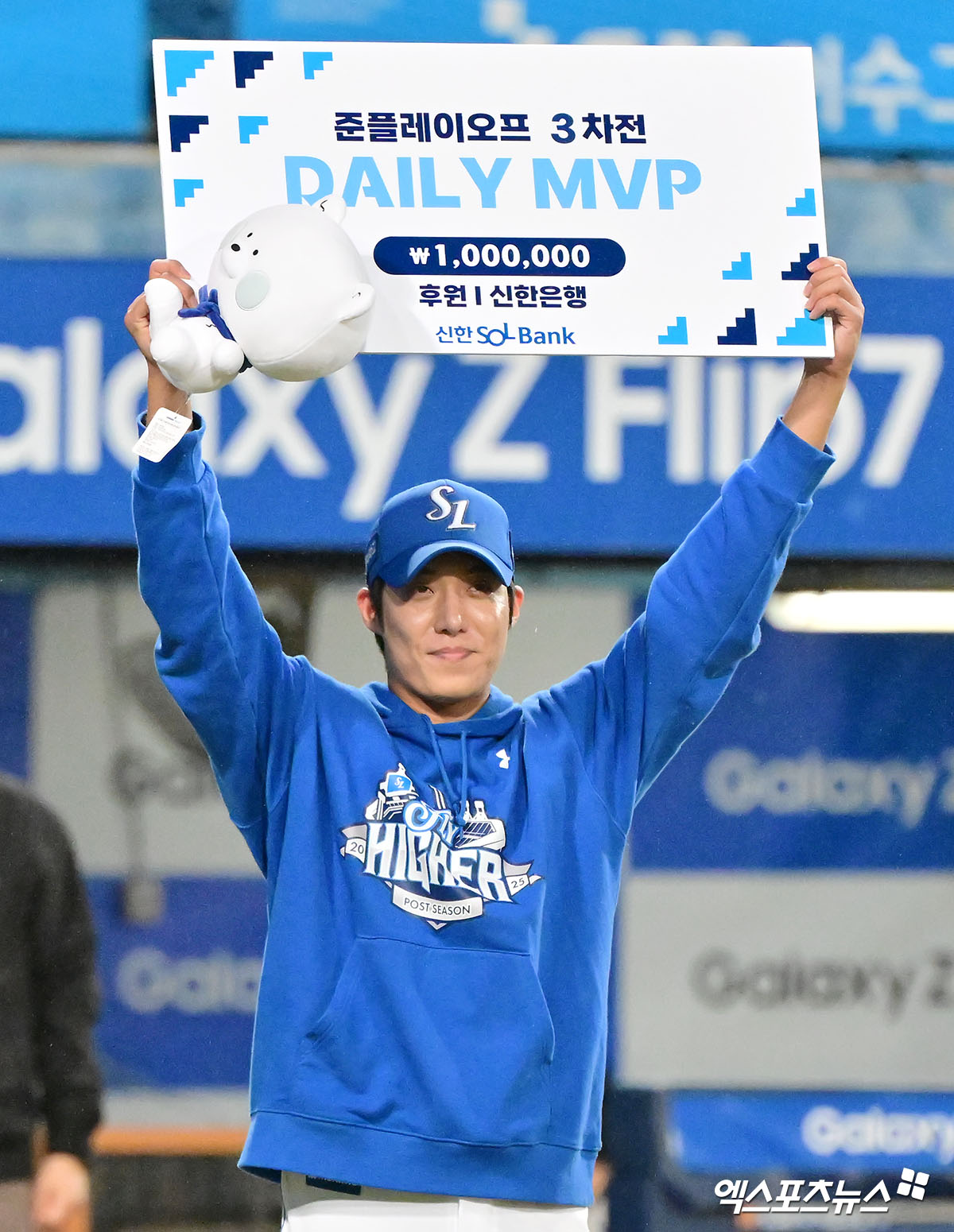 원태인은 준플레이오프 3차전 데일리 MVP를 수상했다. 원태인은 "정말 중요한 경기였다고 생각했다. 끝내기 홈런으로 분위기를 빼앗기고 왔는데 이겨서 다행이다. 1회부터 비가 내렸는데 실내에서 스트레칭을 하면서 열이 안 식도록 노력했다. 빨리 재개하길 원했다. 지난해 한국시리즈 아픔이 정말 큰 경험이다. 그 덕분에 버틴 듯싶다"라고 전했다.
