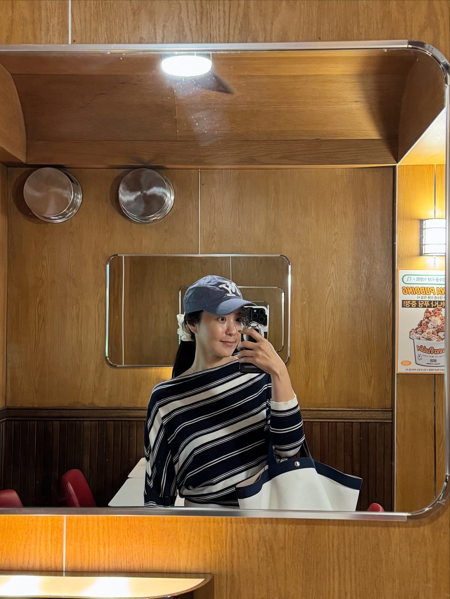 사진 속에는 거울 속 자신의 모습을 담는 박지윤의 모습이 담겨 있다. 화장기 없는 얼굴의 수수한 근황이 눈길을 끈다.