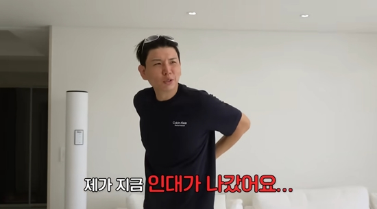 허리를 다친 제이쓴. 사진=유튜브 채널 '홍현희 제이쓴의 홍쓴TV'