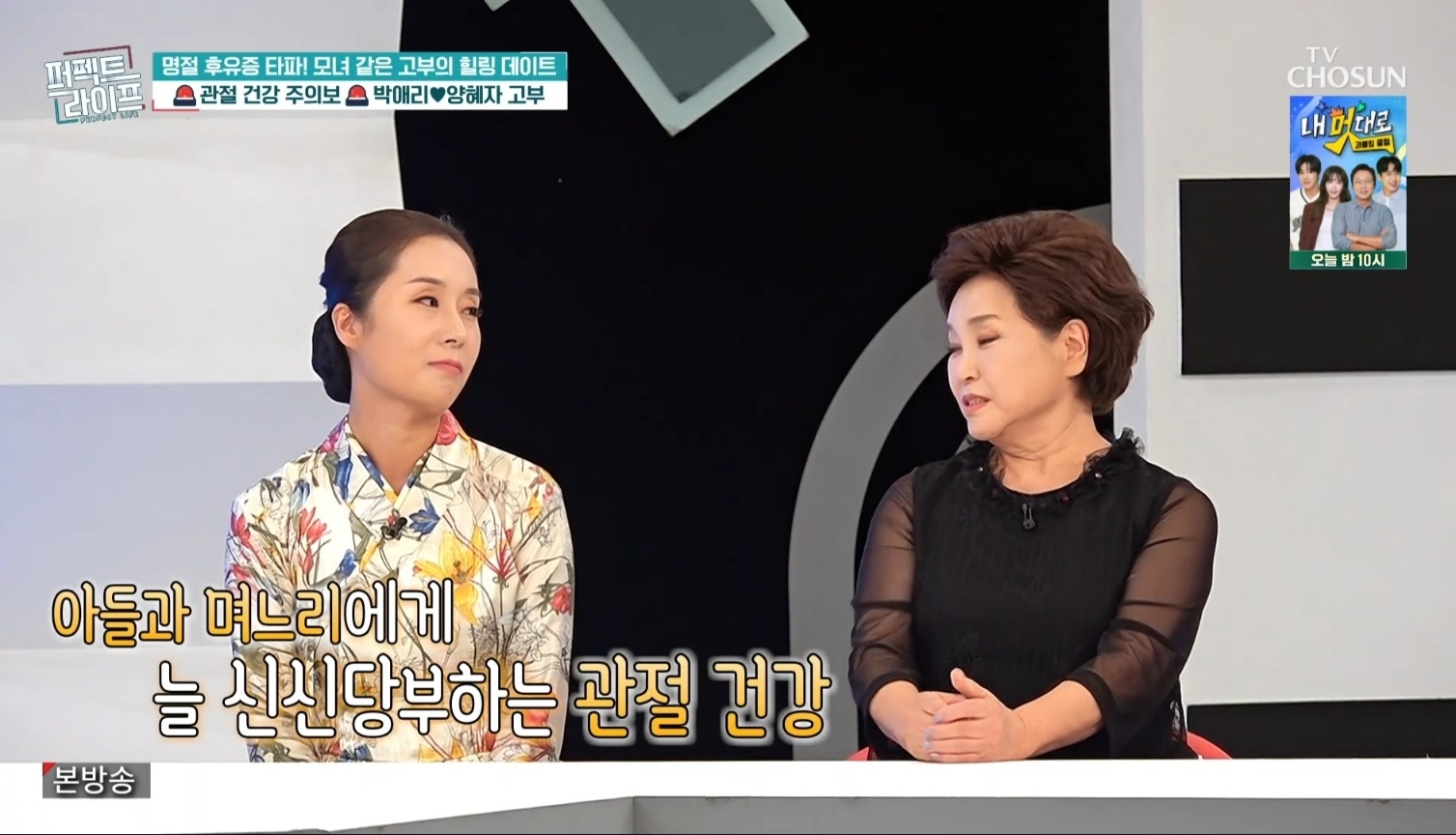 15일 방송된 TV조선 '퍼펙트 라이프'(이하 '퍼라')에는 국악인 박애리와 시어머니 앙혜자 고부가 게스트로 출연했다.