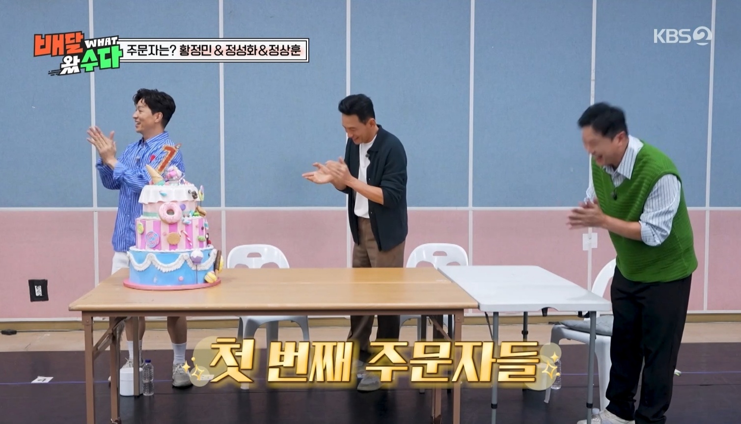 15일 첫 방송된 KBS 2TV '배달왔수다'에는 뮤지컬 '미세스 다웃파이어'를 연습 중인 황정민, 정성화, 정상훈이 첫 주문자로 등장했다.