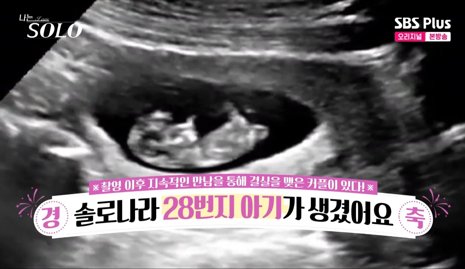 해당 화면에는 '촬영 이후 지속적인 만남을 통해 결실을 맺은 커플이 있다'는 설명과 함께 태아의 심장 박동 소리가 들렸고, '나솔이'라는 태명도 공개됐다.