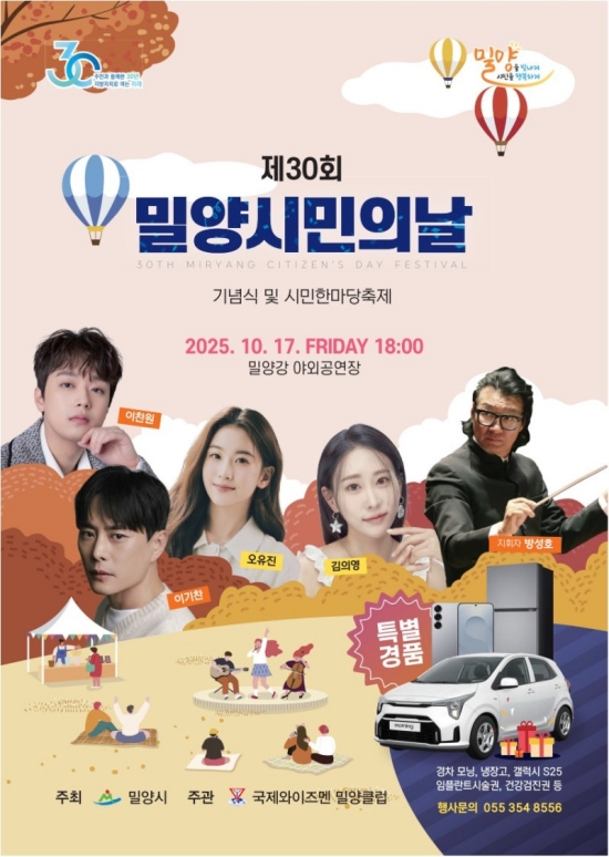 최근 경상남도 밀양시 측은 공식 블로그를 통해 '제30회 밀양시민의 날' 기념행사개최 소식을 알렸다. 이 행사는 10월 17일부터 19일까지 밀양강과 영남루 일원에서 열린다.