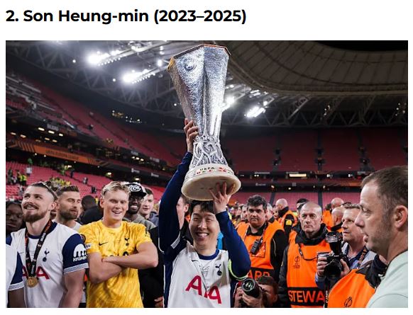 매체는 "토트넘이 프리미어리그 시대(1992년 이후)에 들어선 이후 주장 완장을 찼던 인물은 총 9명과 '유다(라이벌 아스널로 이적한 솔 캠벨)'뿐이다"라며 역대 주장 명단을 공개했다. 손흥민을 이어 주장 완장을 이어받은 크리스티안 로메로는 임명된 시점이 너무 최근이기에 이번 명단에는 포함되지 않았다.
