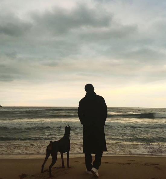 사진에는 배정남이 벨과 함께 해변을 바라보고 있는 뒷모습이 담겼다. 고요한 바다와 어우러진 두 실루엣이 묵직한 여운을 안긴다.