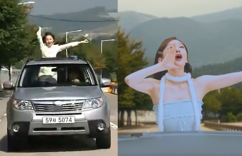 이 가운데 '타임캡슐'이라는 곡명과 어울리게 뮤직비디오 속 과거 화제를 모았던 강민경의 연기 장면을 오마주한 부분이 화제를 모으고 있다.