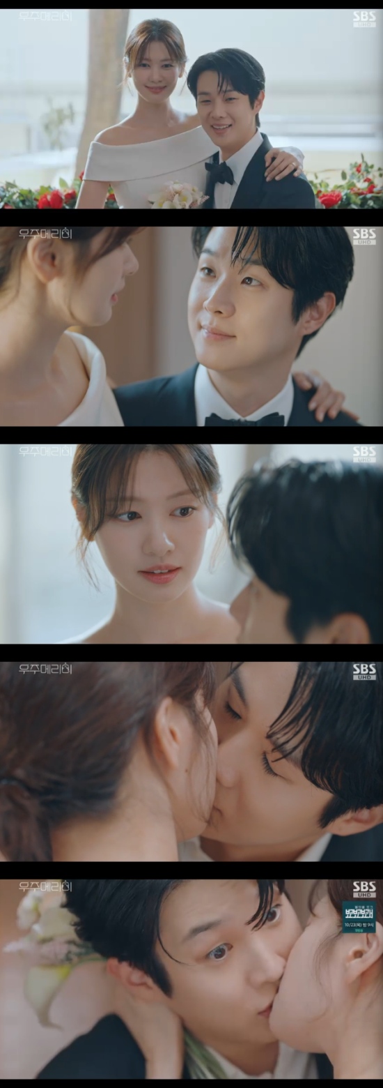 (엑스포츠뉴스 오수정 기자) '우주메리미'에서 최우식과 정소민의 기습 입맞춤이 설렘을 유발했다.