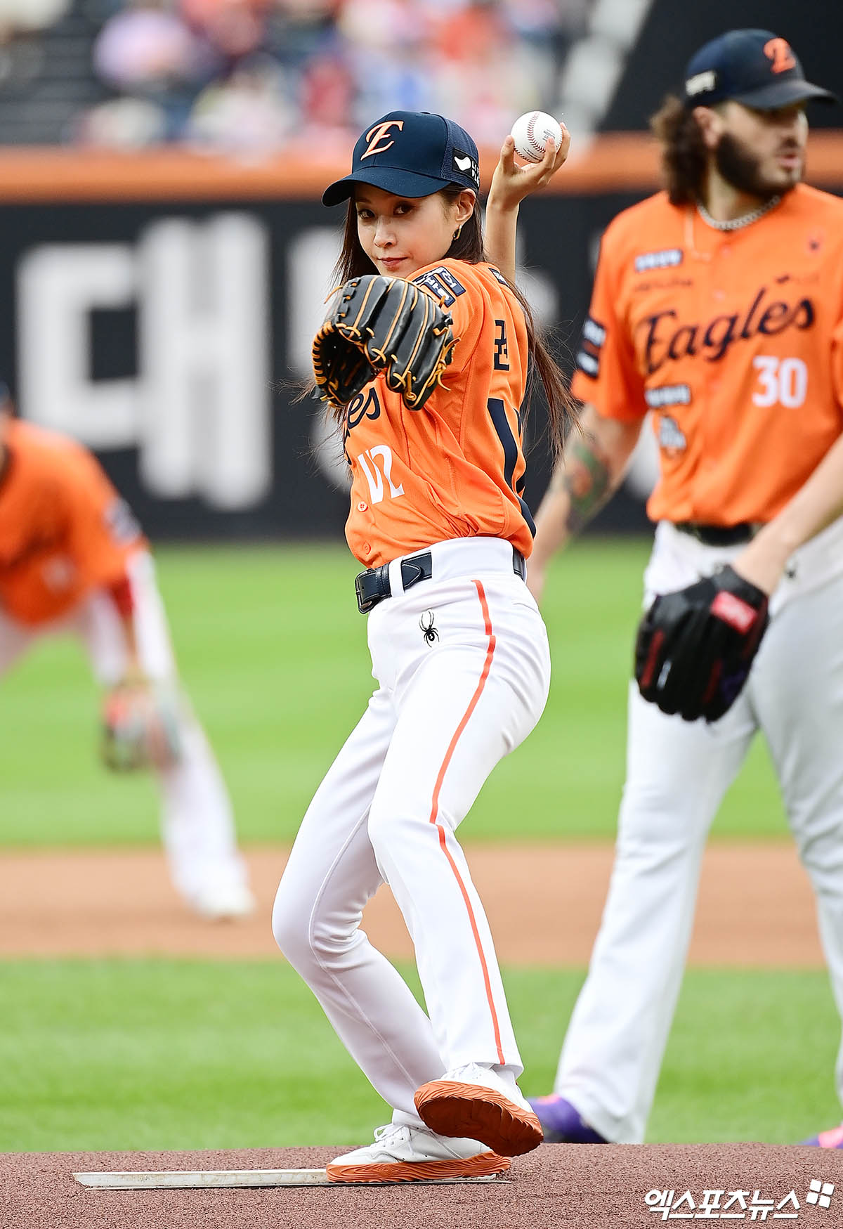 (엑스포츠뉴스 대전, 박지영 기자) 18일 오후 대전한화생명볼파크에서 열린 '2025 신한 SOL Bank KBO 포스트시즌' 삼성 라이온즈와 한화 이글스의 플레이오프 2차전 경기에 앞서 소녀시대 유리가 시구를 하고 있다.