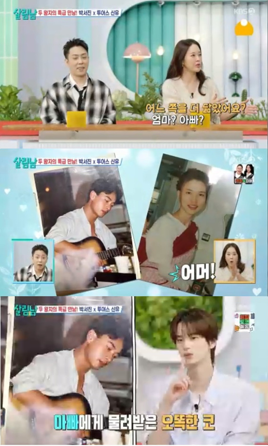 신유는 아버지의 코와 진한 눈썹을 닮았다고 말했다. 백지영은 신유에게 "입 있는 데는 또 어머님이랑 똑같다"고 했다.