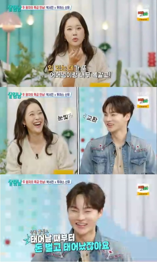 박서진은 신유를 두고 "태어날 때부터 돈 벌고 태어났다"고 말하면서 부러운 눈길을 보냈다.