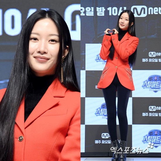 20일 오전 서울 강남구 논현동 엘리에나 호텔에서 열린 Mnet 새 예능 프로그램 '스틸하트클럽' 제작발표회에 참석한 문가영은 레드 컬러 재킷과 블랙 레깅스를 매치한 강렬한 스타일링으로 등장했다.