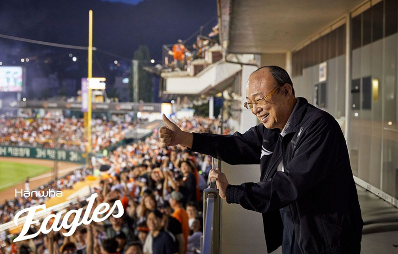 "이글스 주식 10% 내 꺼!"→홈구장 직관 또 직관→PS 져도 불꽃놀이 펑펑…김승연 회장의 야구사랑, 가을에 더 빛난다