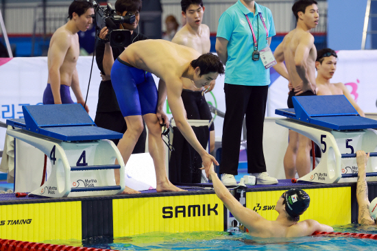 지난 18일 남자 일반부 자유형 1500m 정상에 오른 그는 19일엔 이번 대회 남자 자유형 200m에서 아시아신기록을 달성한 황선우 남자 일반부 계영 800m 우승을 합작했다.