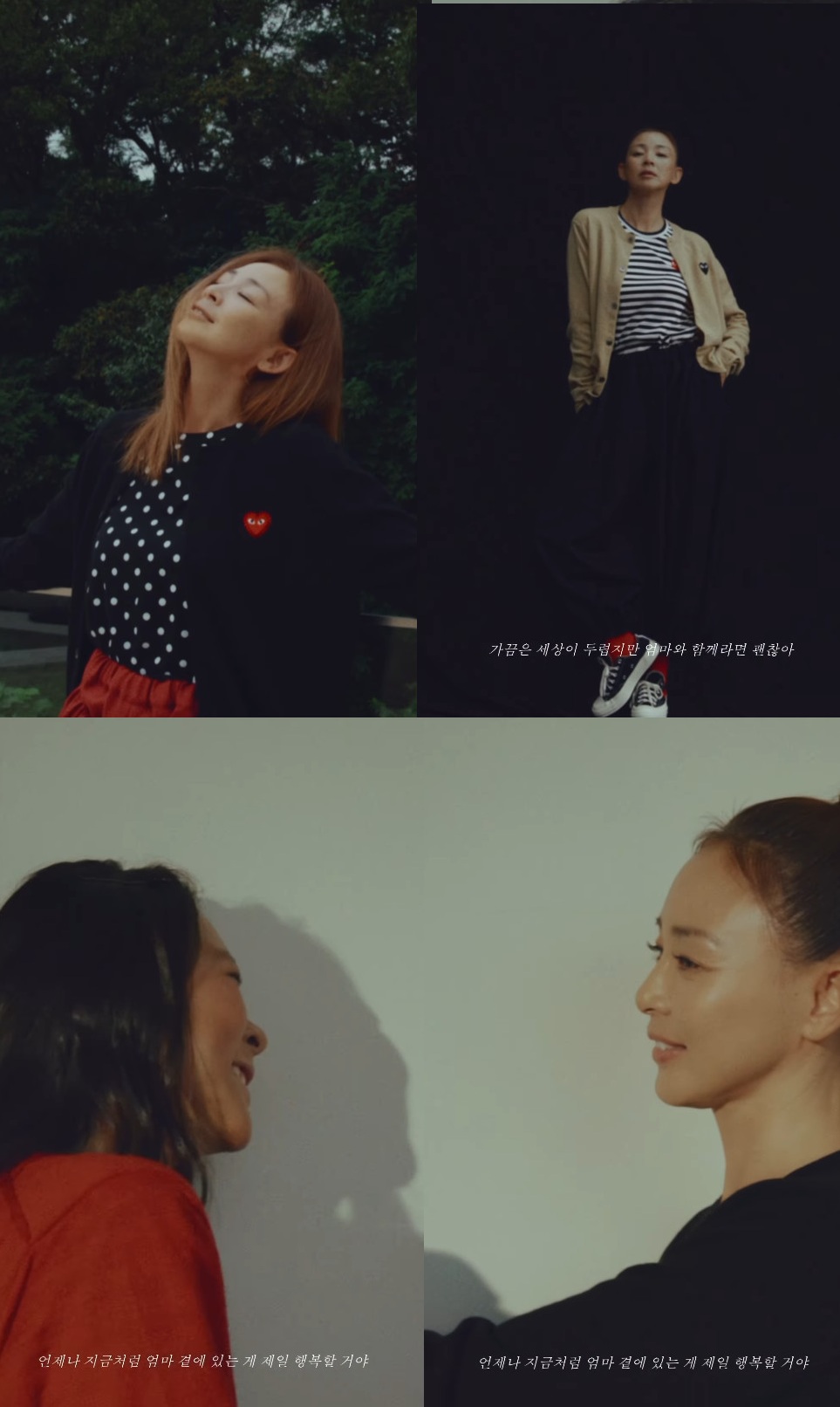 화보 영상에는 "사랑 네가 태어난 순간부터 세상은 바뀌었어", "네가 만지는 작은 것들에서도 엄마는 우주가 보여", "나도 엄마처럼 좋은 어른이 될 수 있을까?", "가끔은 세상이 두렵지만 엄마와 함께라면 괜찮아"라는 두 사람의 마음이 담겨 훈훈함을 안긴다.