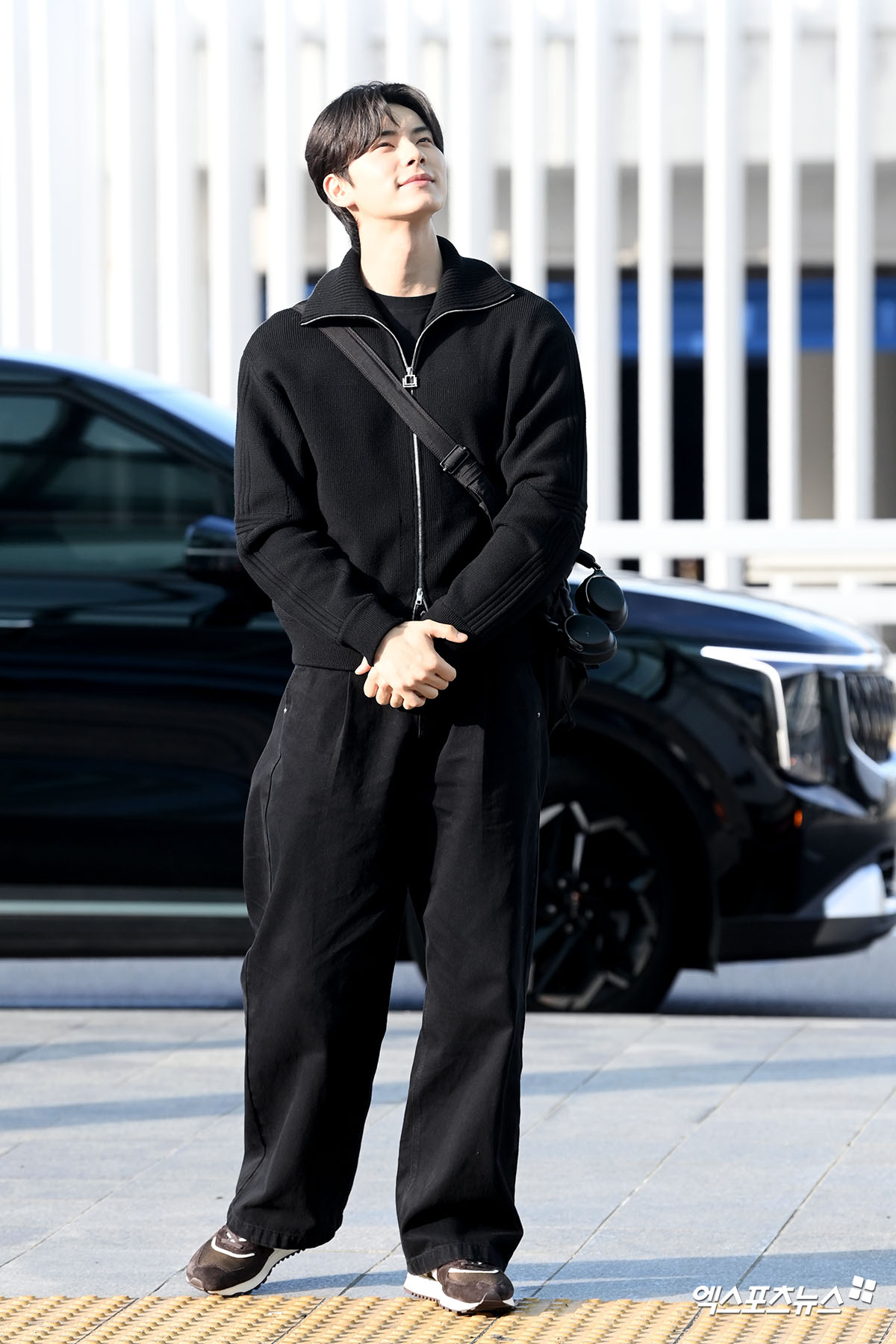 이날 이채민은 편안하면서도 감각적인 올블랙 룩으로 등장했다. 지퍼 디테일의 니트 집업에 와이드 핏 팬츠를 매치해 미니멀하면서도 여유로운 분위기를 연출했다. 여기에 어깨에 멘 크로스백과 무채색 스니커즈로 실용적인 포인트를 더하며 세련된 공항패션을 완성했다.