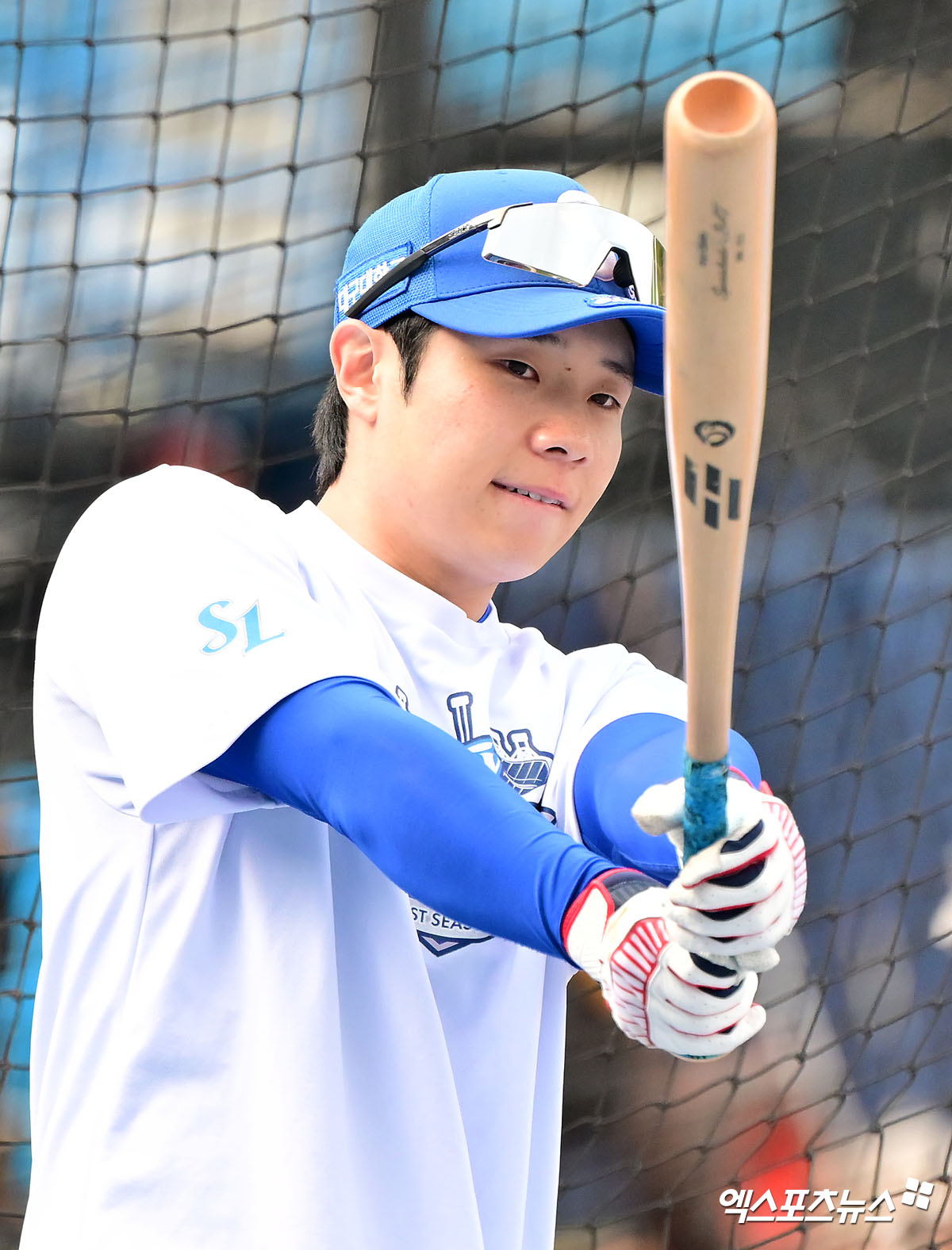 (엑스포츠뉴스 대구, 김한준 기자) 22일 오후 대구삼성라이온즈파크에서 열리는 '2025 신한 SOL Bank KBO 포스트시즌' 한화 이글스와 삼성 라이온즈의 플레이오프 4차전 경기, 삼성 김지찬이 훈련에 임하고 있다.