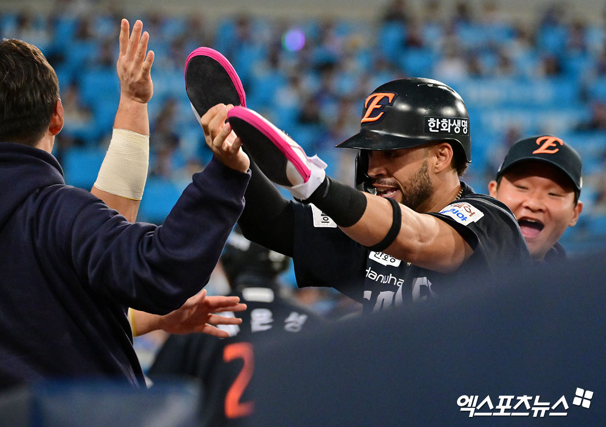 한화는 22일 대구 삼성라이온즈파크에서 삼성 라이온즈와 2025 신한 SOL 뱅크 KBO 플레이오프 4차전을 치르고 있다.