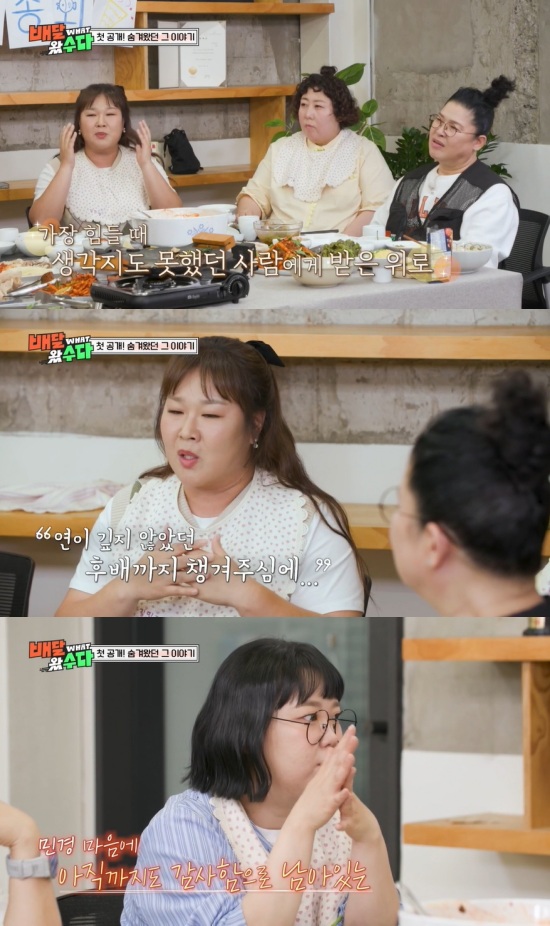 이날 방송에서 김민경은 "제가 영자 선배님을 촬영할 때 처음 뵀다. 그 땐 선배님이 너무 어려웠다. 말 한 번 건네본 적이 없었다"고 입을 열었다.