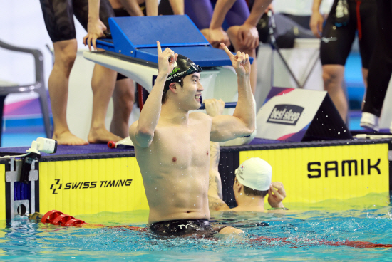 황선우는 지난 20일 부산 사직종합운동장 실내수영장에서 열린 제106회 전국체육대회(전국체전) 수영 경영 남자 일반부 자유형 200m 결승에서 1분43초92를 기록하며 금메달을 목에 걸었다.