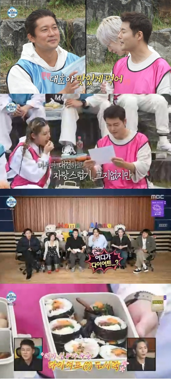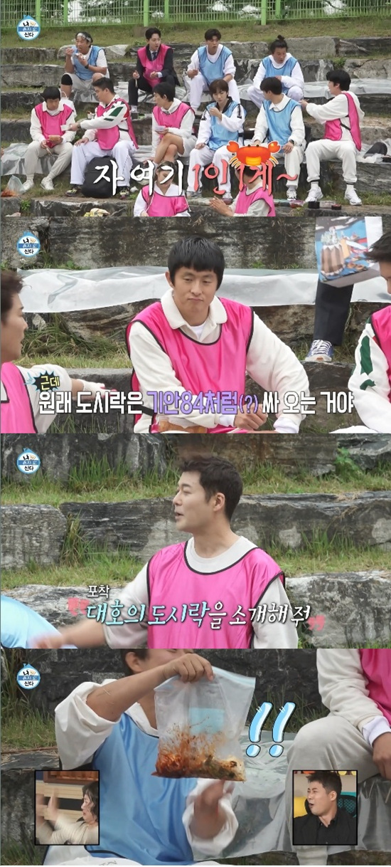 김대호는 지퍼백에 넣어서 가져온 밥, 반찬을 공개하며 나름 비빔밥 도시락이라고 소개했지만 비주얼이 모두를 당황시켰다.