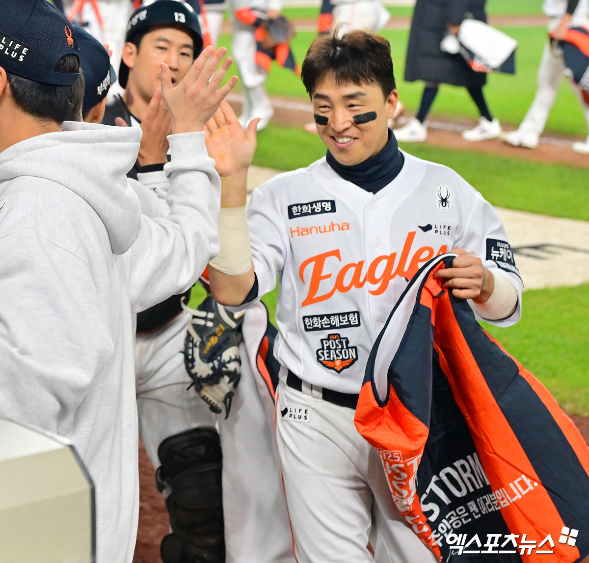 김경문 감독이 이끄는 한화는 24일 대전 한화생명 볼파크에서 열린 2025 신한 SOL Bank KBO리그 포스트시즌 삼성 라이온즈와의 플레이오프 5차전에서 11-2 대승을 거뒀다. 벼랑 끝 승부에서 한화는 시리즈 전적 3승1패를 만들며 한국시리즈행을 확정지었다.