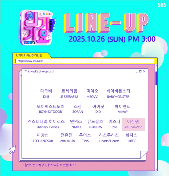 'SBS 인기가요'는 라인업 소개 페이지를 통해 이찬원을 "다채로운 스펙트럼으로 음악적 장르를 넘나드는 만능 엔터테이너"라고 소개했다.
