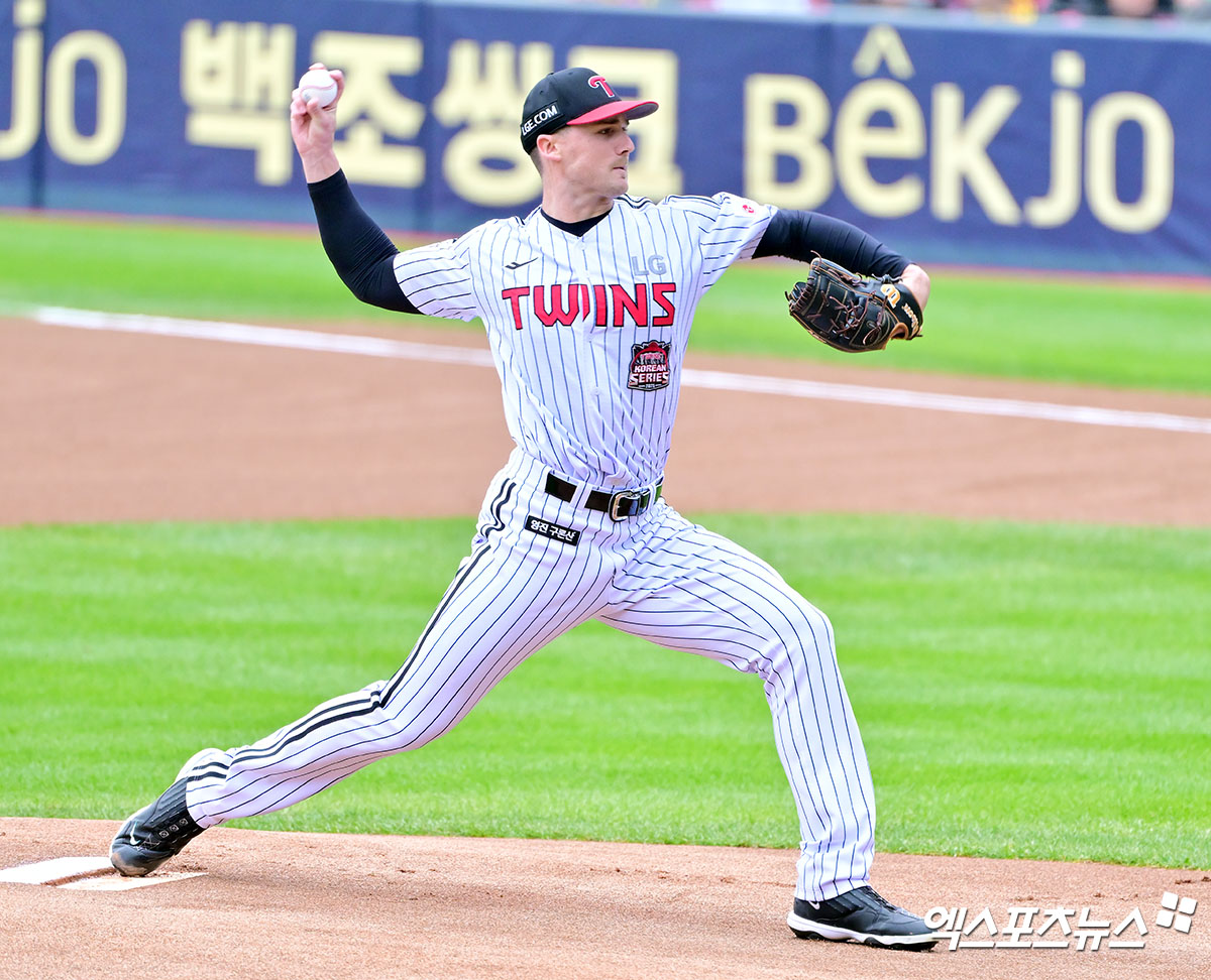 (엑스포츠뉴스 잠실, 김근한 기자) LG 트윈스가 한국시리즈 1차전에서 압도적인 경기력으로 한화 이글스를 완벽하게 꺾었다. 역대 한국시리즈 1차전 승리 팀 우승 확률은 73.2%(41차례 가운데 30번)에 달한다. 한화는 19년 만에 올라온 한국시리즈 첫 경기에서 사사구 남발과 폭투, 그리고 치명적인 실책까지 나오면서 자멸했다.