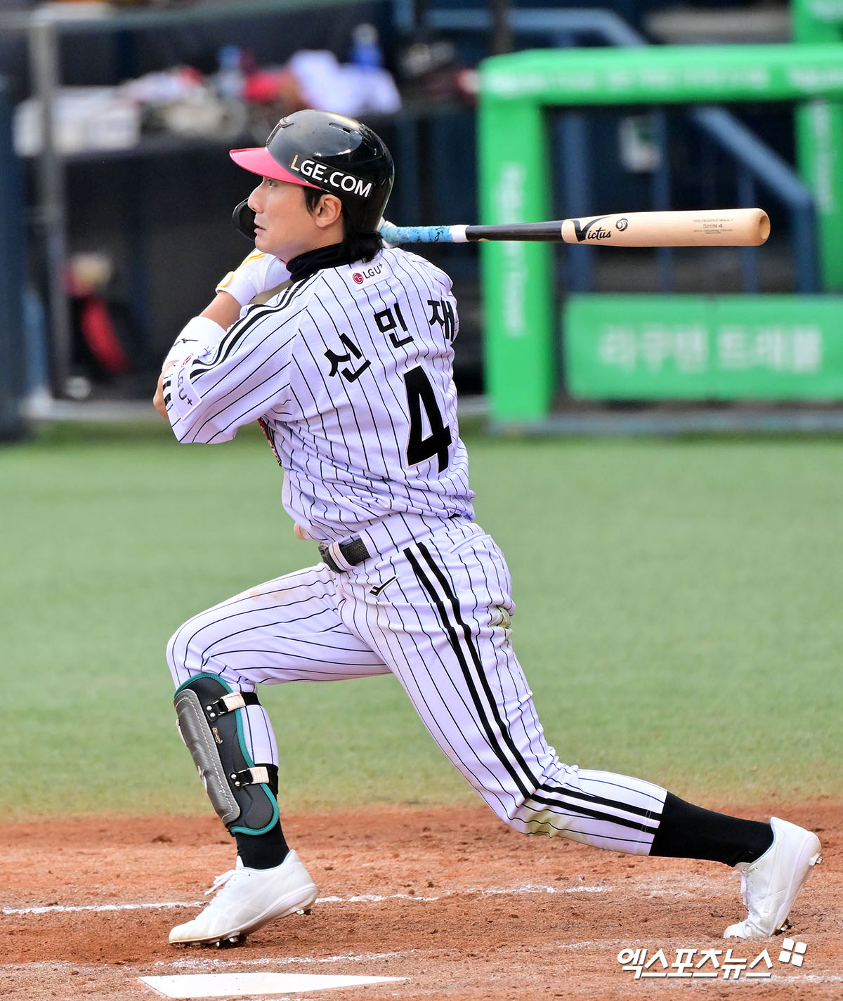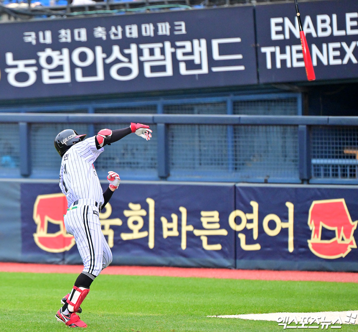 LG는 5회말 1사 뒤 신민재가 중견수 오른쪽 뒤로 넘어가는 3루타로 또 득점권 기회를 만들었다. 이어 오스틴의 3루수 땅볼 때 상대 홈 송구 실책으로 또 추가 득점이 이뤄졌다.