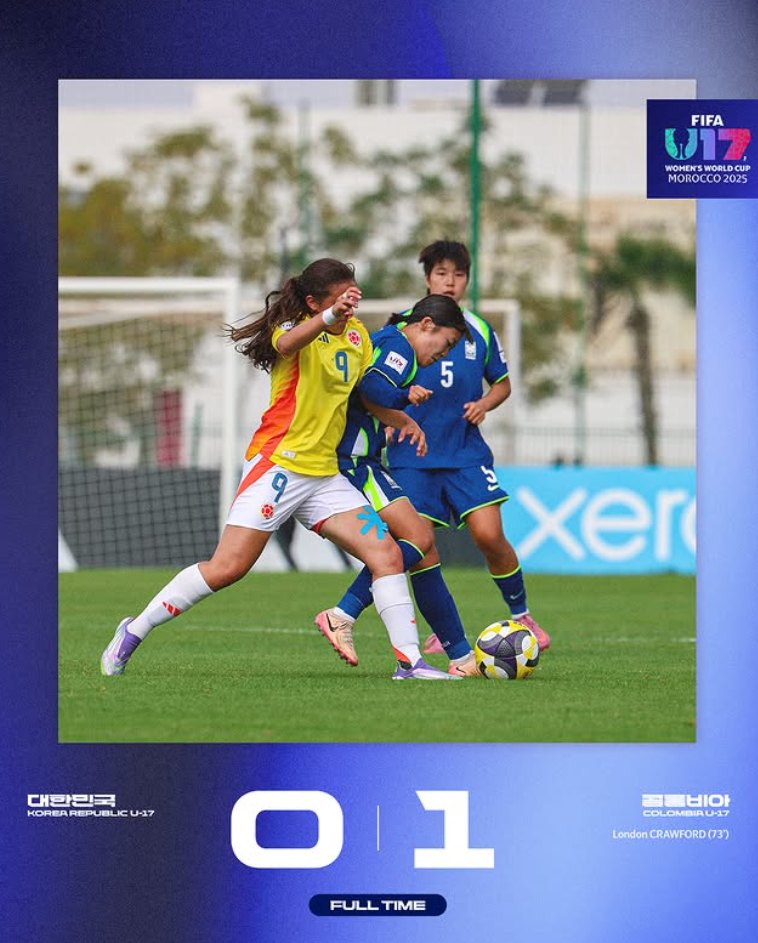 고현복 감독이 이끄는 대한민국 U-17 여자축구 국가대표팀은 25일(한국시간) 모로코 살레의 모하메드 Ⅵ 풋볼 아카데미에서 열린 2025 국제축구연맹(FIFA) U-17 여자월드컵 조별리그 E조 3차전에서 콜롬비아에 0-1로 패했다.