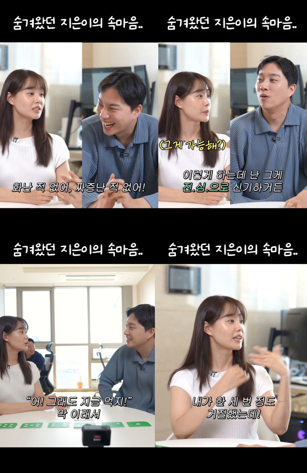 송지은은 "오빠랑 대화하면 오빠가 항상 '난 지은이에게 서운한 적 없어, 화난 적 없어, 짜증난 적 없어' 이러는데 그게 난 진심으로 신기하다"라고 솔직히 밝혔다.