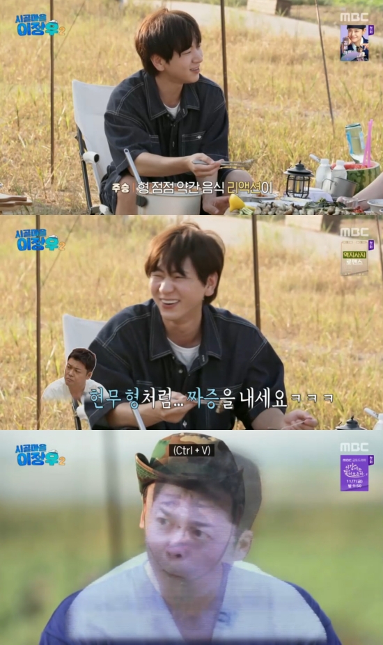 갯벌장어를 명이나물에 싸 먹은 이장우는 너무 맛있다며 표정을 찡그렸고, 이주승은 "형은 점점 음식 리액션이 현무 형처럼 짜증을 낸다"고 말해 웃음을 자아냈다.
