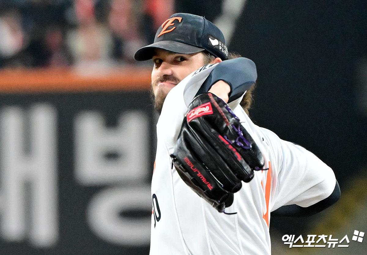 1회말 한화는 손아섭이 7구를 봤으나 낫아웃 삼진으로 돌아섰고, 리베라토 1루수 땅볼 후 문현빈의 중전안타가 나왔지만 노시환이 3루수 땅볼로 돌아서면서 이닝을 끝냈다.