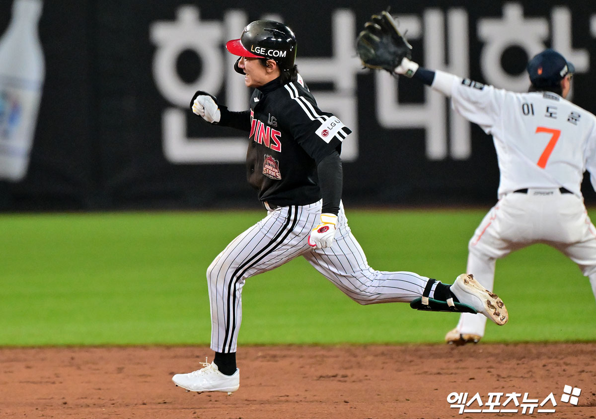 LG는 곧바로 반격했다. 구본혁이 유격수 앞 내야안타로 출루한 뒤 박해민 이 삼진, 홍창기가 중견수 뜬공으로 물러나며 만들어진 2사 주자 1루 상황, 신민재가 좌중간으로 빠지는 적시 2루타로 구본혁을 불러들였다. 좌익수 문현빈이 다이빙 캐치를 시도했지만 뒤로 빠졌다.