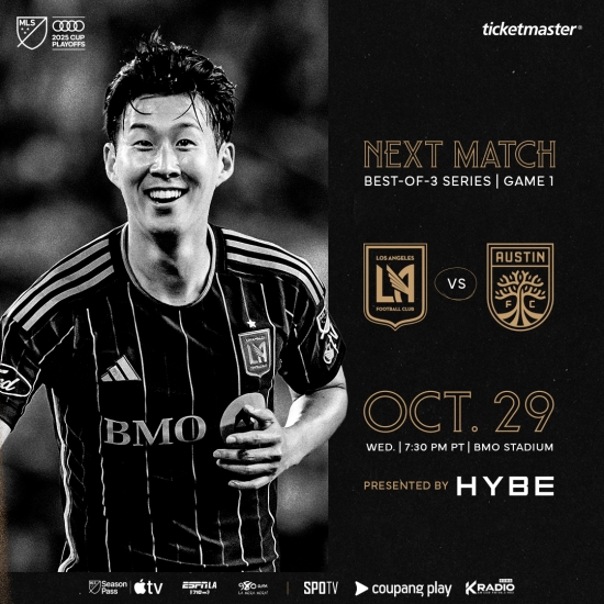 손흥민의 소속팀 LAFC는 오는 30일 오전 11시 30분(이하 한국시간) 미국 캘리포니아주 로스앤젤레스에 있는 BMO 스타디움에서 오스틴과 2025시즌 MLS 플레이오프 1라운드 1차전을 갖는다.