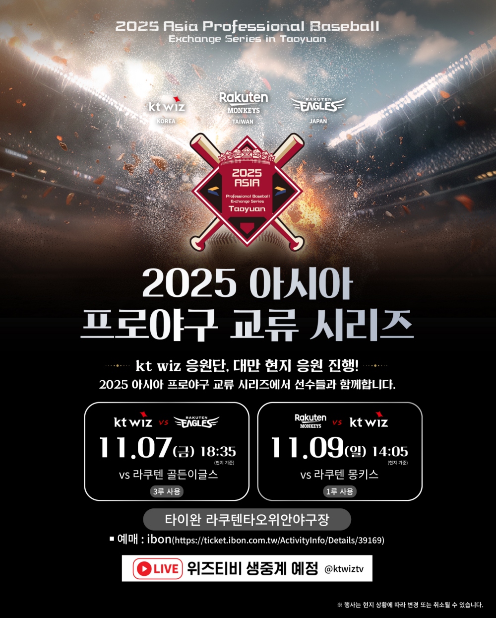 한편, KT는 11월 7일과 9일 열리는 교류전을 구단 공식 유튜브 채널인 위즈티비를 통해 생중계할 예정이다.