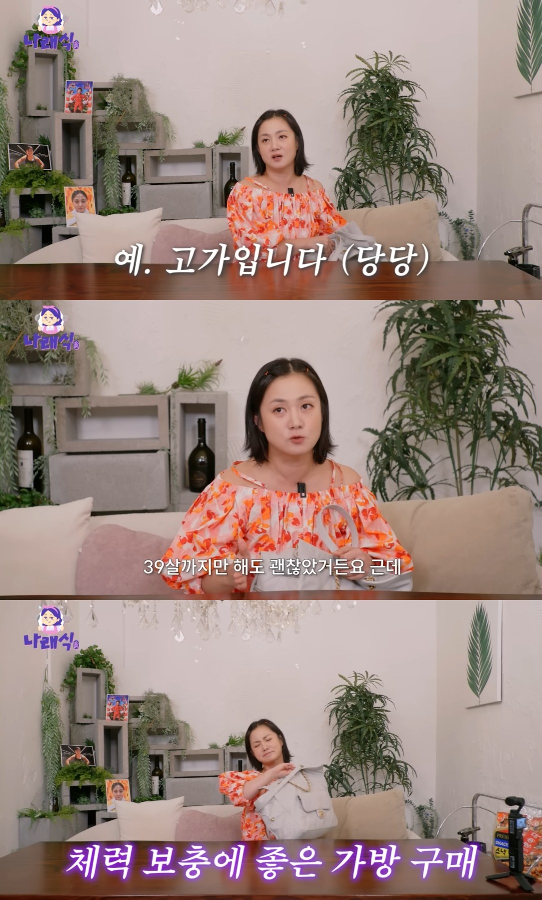 이어 "몸도 약간 체력도 떨어지는 것 같아서 가방을 질렀다. 마흔이 된 나를 위해"라며 스스로에게 명품을 선물하는 재력을 과시했다.