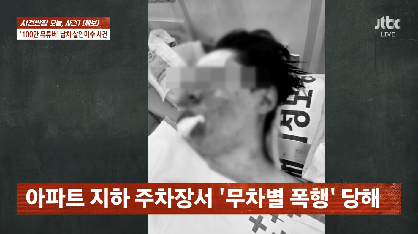 수탉의 변호인은 "수탉이 주차장으로 내려갔는데 주차장에서 차를 주차하지 않고 다니는 통로에 정차해놓은 상태에서 차에 타라고 했다. 의심이 되니까 타지 않고 있는데 차 뒷좌석을 보니 어떤 사람이 마스크를 쓰고 후드를 뒤집어쓴 다음에 목장갑을 끼고 숨어있었다고 했다. 이상해서 112에 신고했더니 이 사람들이 다급해졌는지 뒤에 있는 사람이 나와서 줄로 목을 졸랐다. 나중에는 알루미늄 방망이로 무차별 폭행해 납치했다"고 전했다. 지하 주차장에는 아직도 수탉의 혈흔이 곳곳에 떨어져 있어 충격을 안겼다.